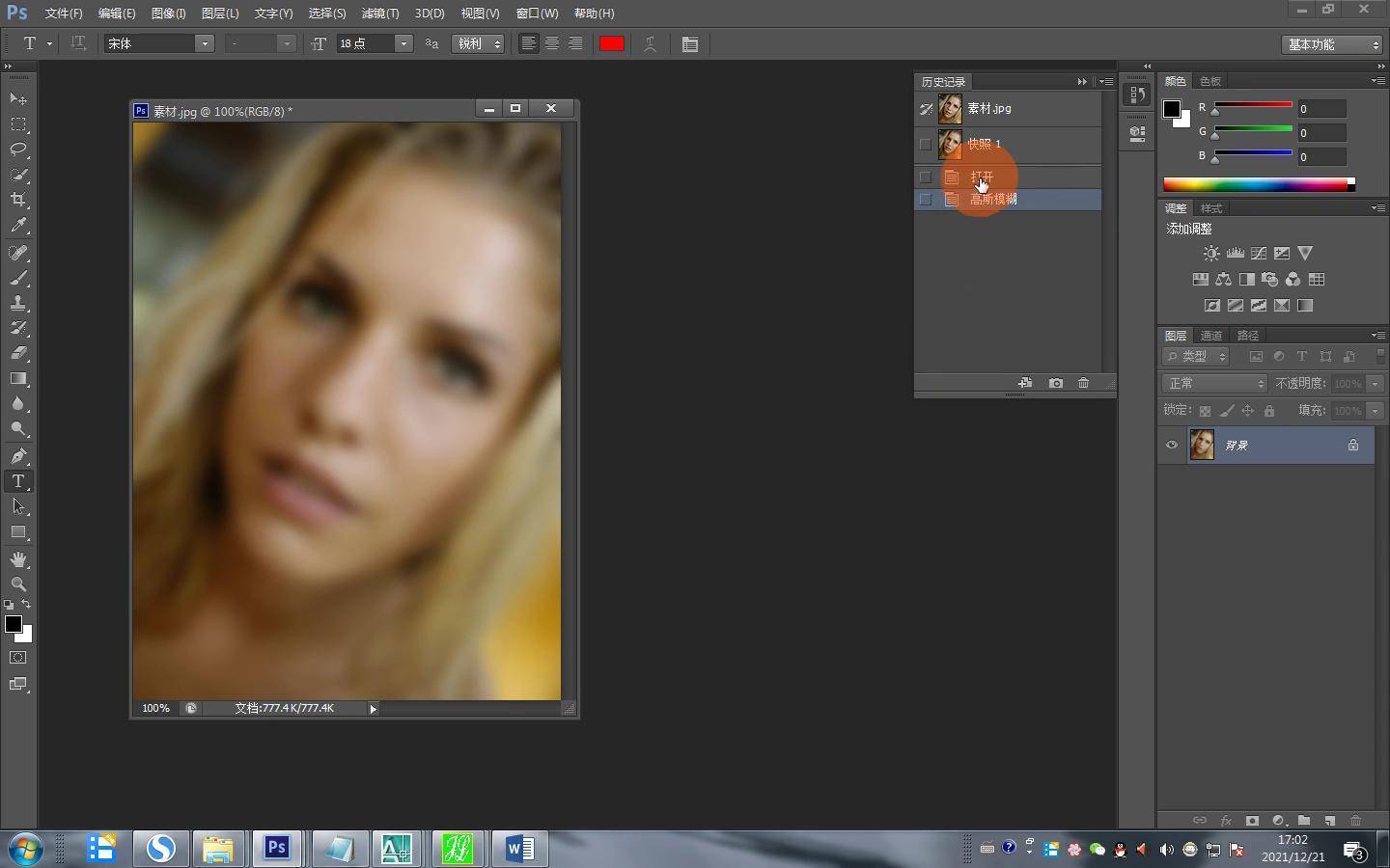 →第四步:再用历史记录快捷键是外键,也就是这个,因为历史记录作用是撤销,其实思路是这个意思。再用历史记录在美女上面涂抹,因为在打开状态涂抹,涂抹结果就是快照一交易,不是模糊七个像素吗?所以这是它的原理。