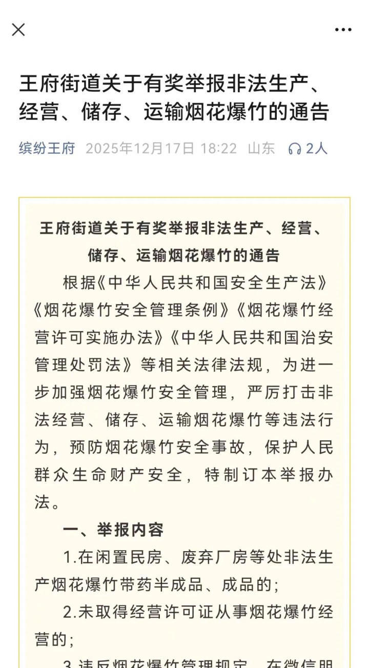 坚持“排查+宣教”同步推进。线上依托微信群、公众号等新媒体平台,持续推送相关法律知识、安全隐患警示、典型案例分析等内容;线下通过发放宣传手册、入户走访讲解等多种形式,面对面向群众普及非法烟花爆竹的严重危害、识别特征及举报奖励政策,引导群众积极举报非法储存、销售、运输烟花爆竹线索,营造“群众参与、社会共治”的良好氛围。